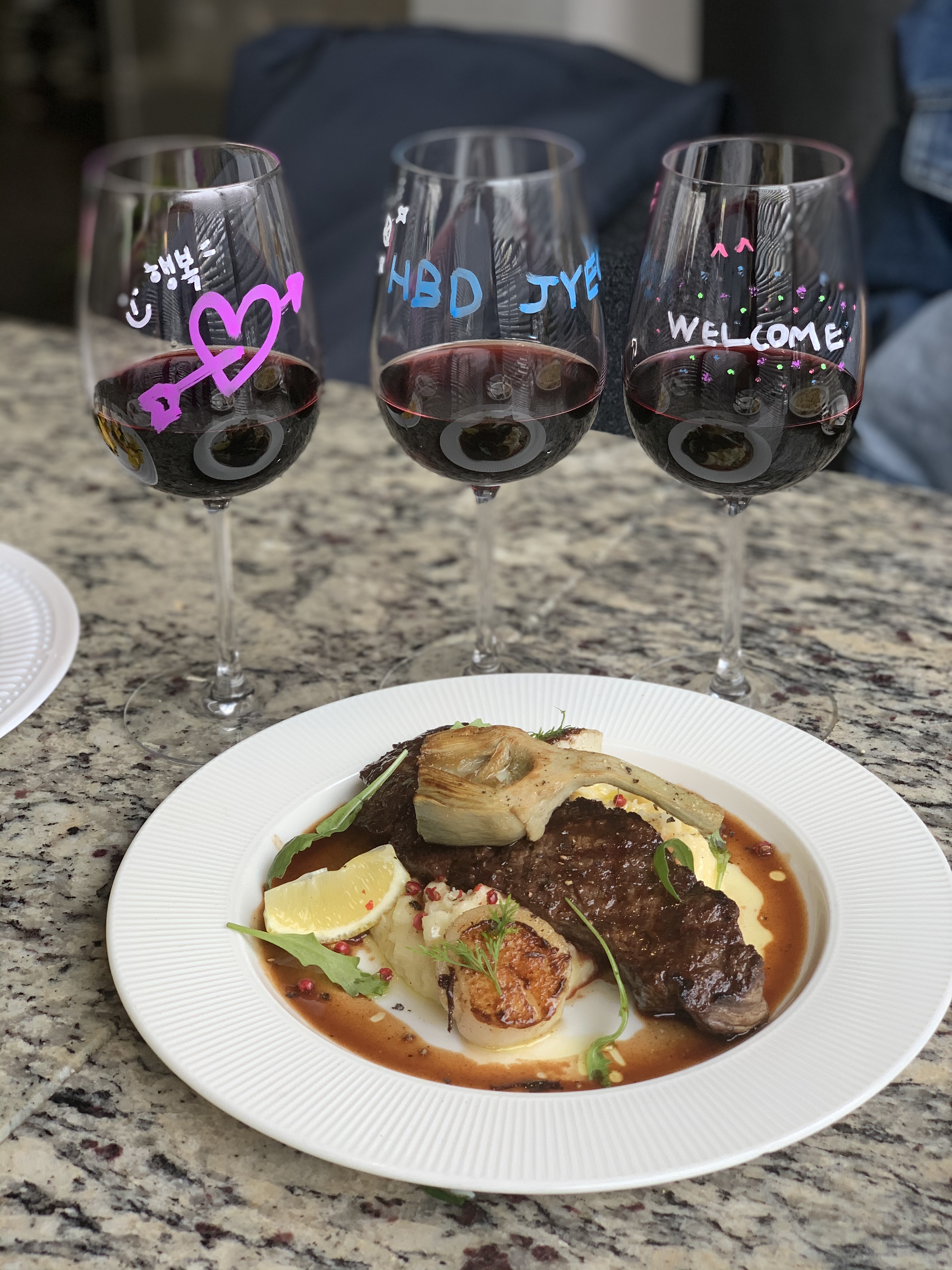 와인도 맛있었고, 고기도! 관자도! 넘 맛있었다... ㅠㅠ