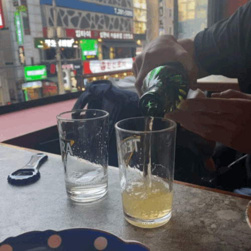 동네친구가 섬섬옥수로 공손하게 따라주는 소맥