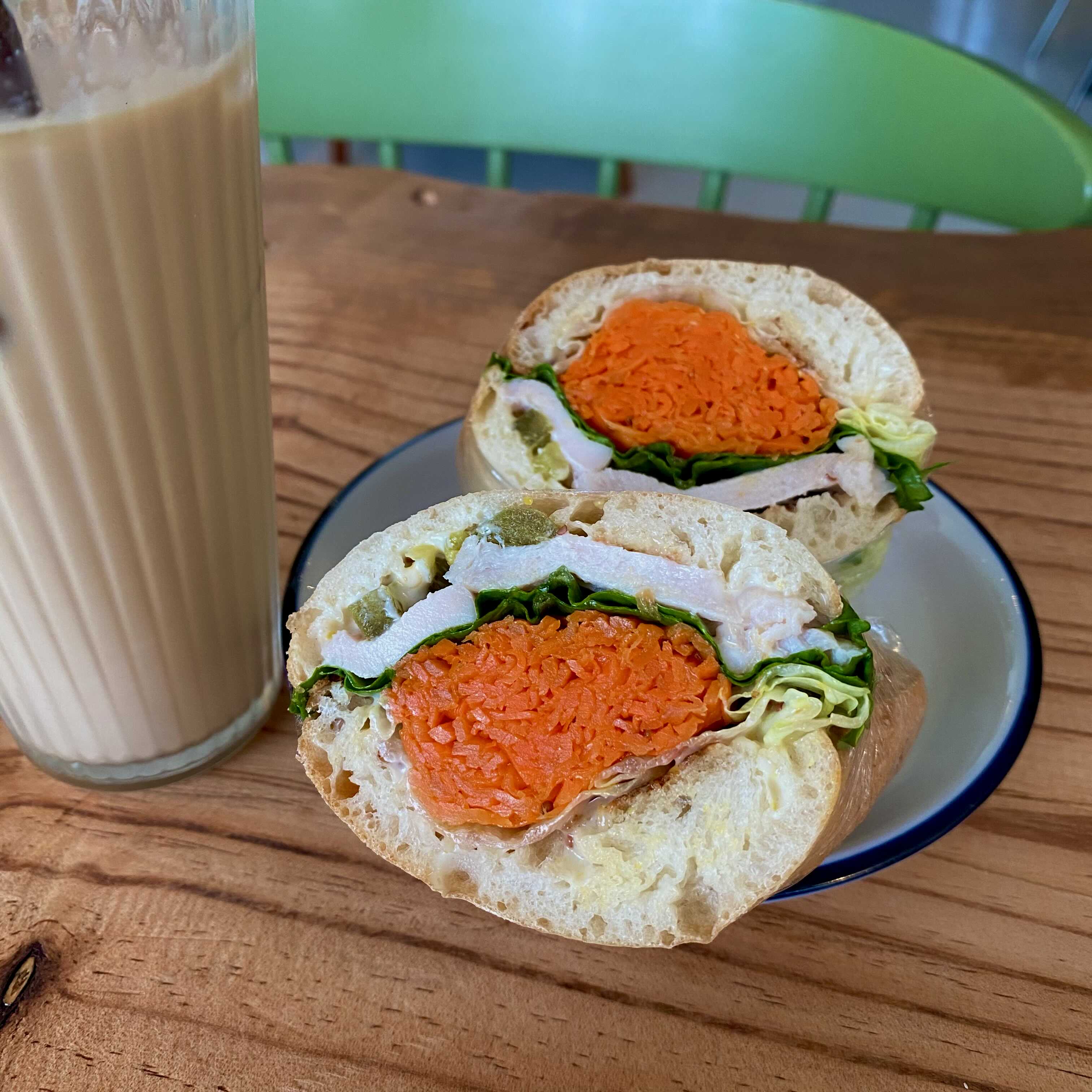 내가 조아하는 라떼랑 당근 닭가슴살 샌디치 먹음!!!