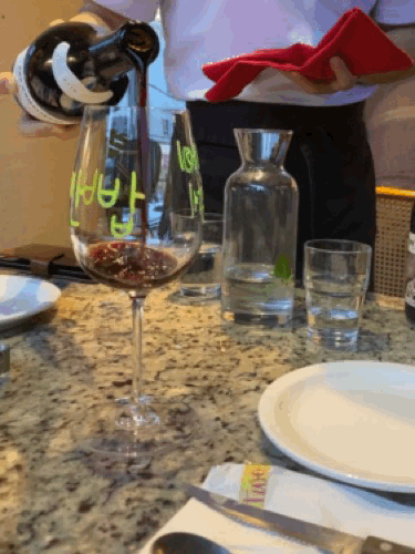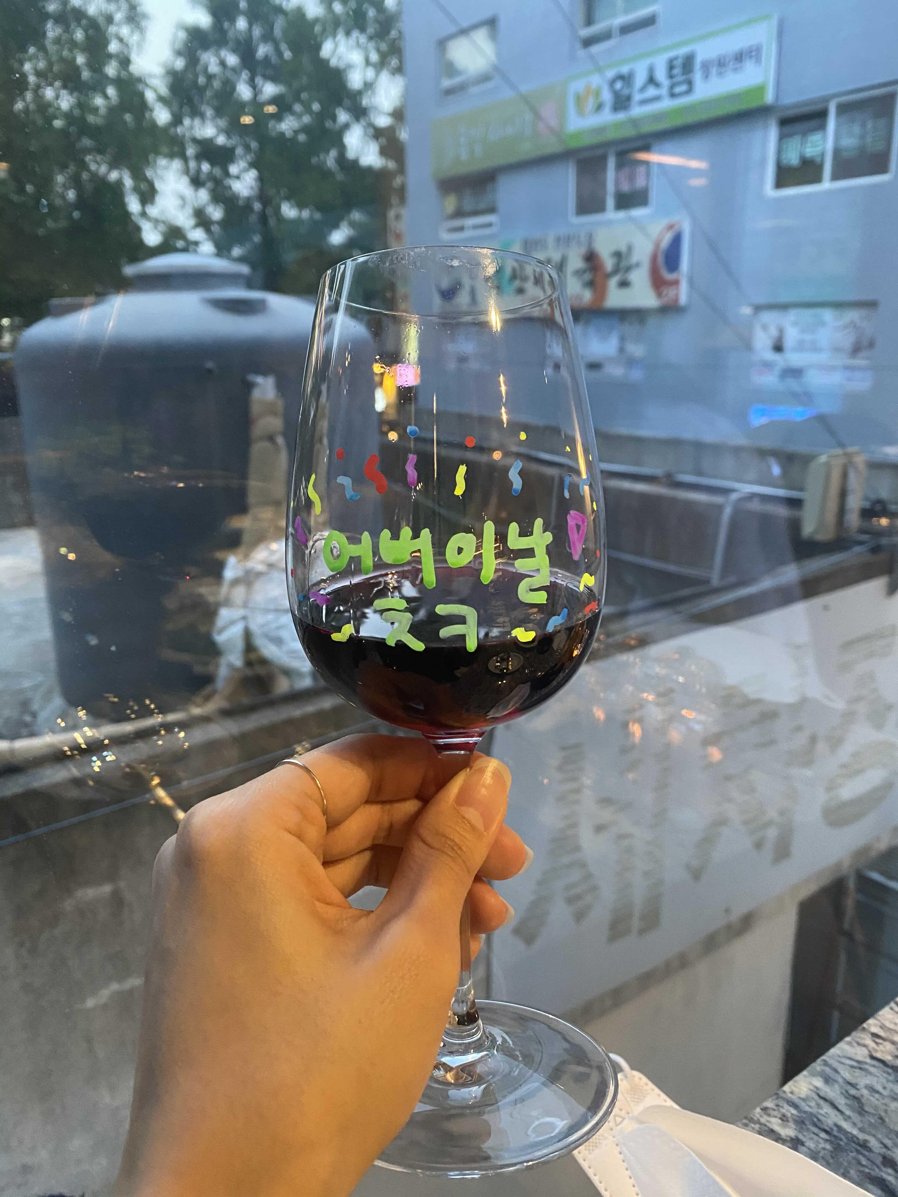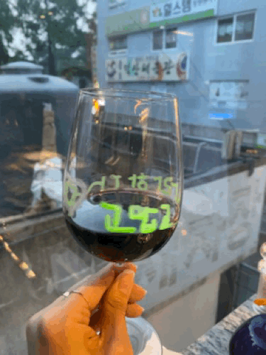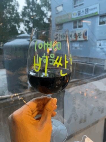 다 같이 음식 기다리면서 와인잔에 낙서하기 :)