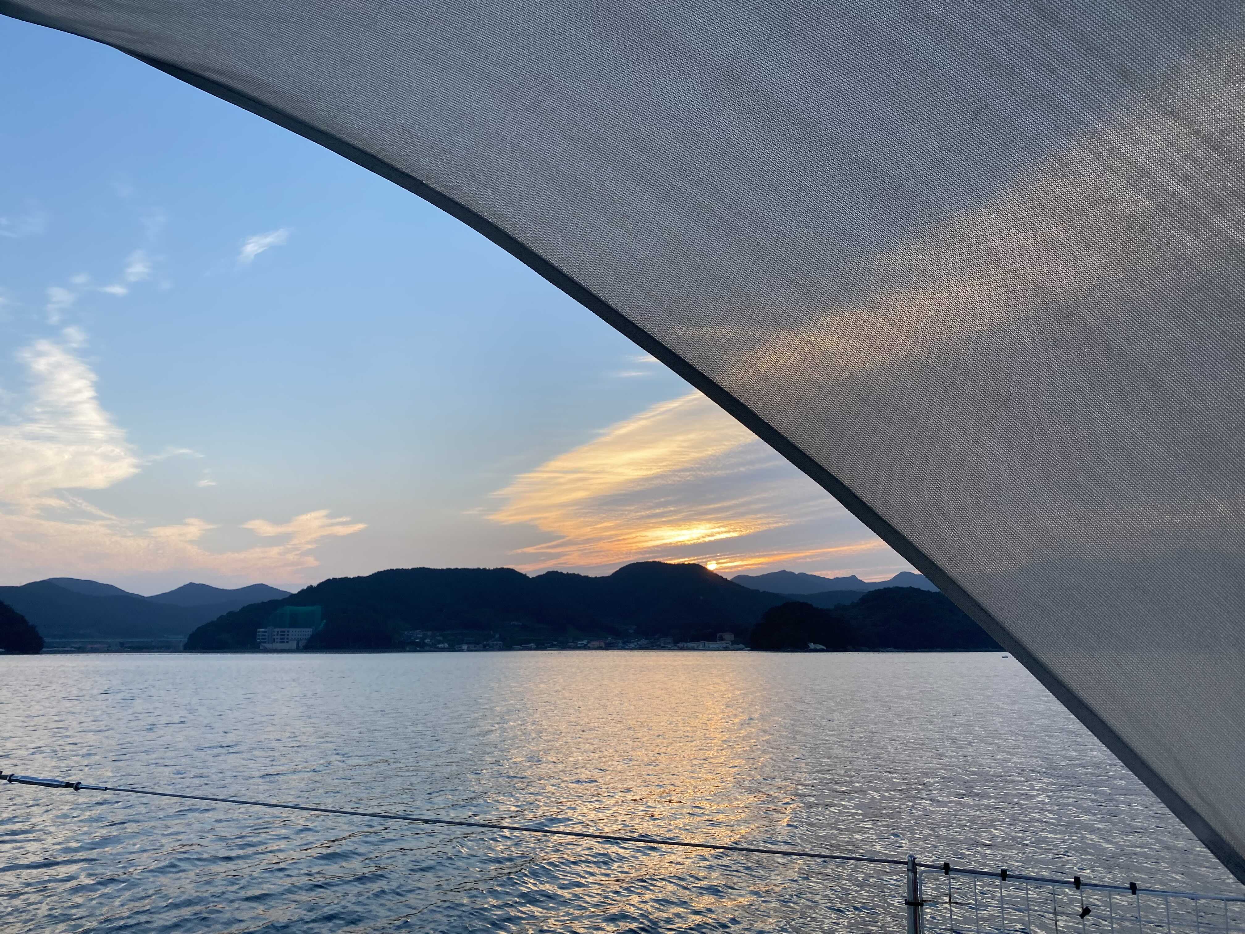 해지는게 잘 보이는, 풍경이 좋은 포인트에서 잠깐 요트를 세워주시는데 열심히 사진 찍었다 ㅎㅎ