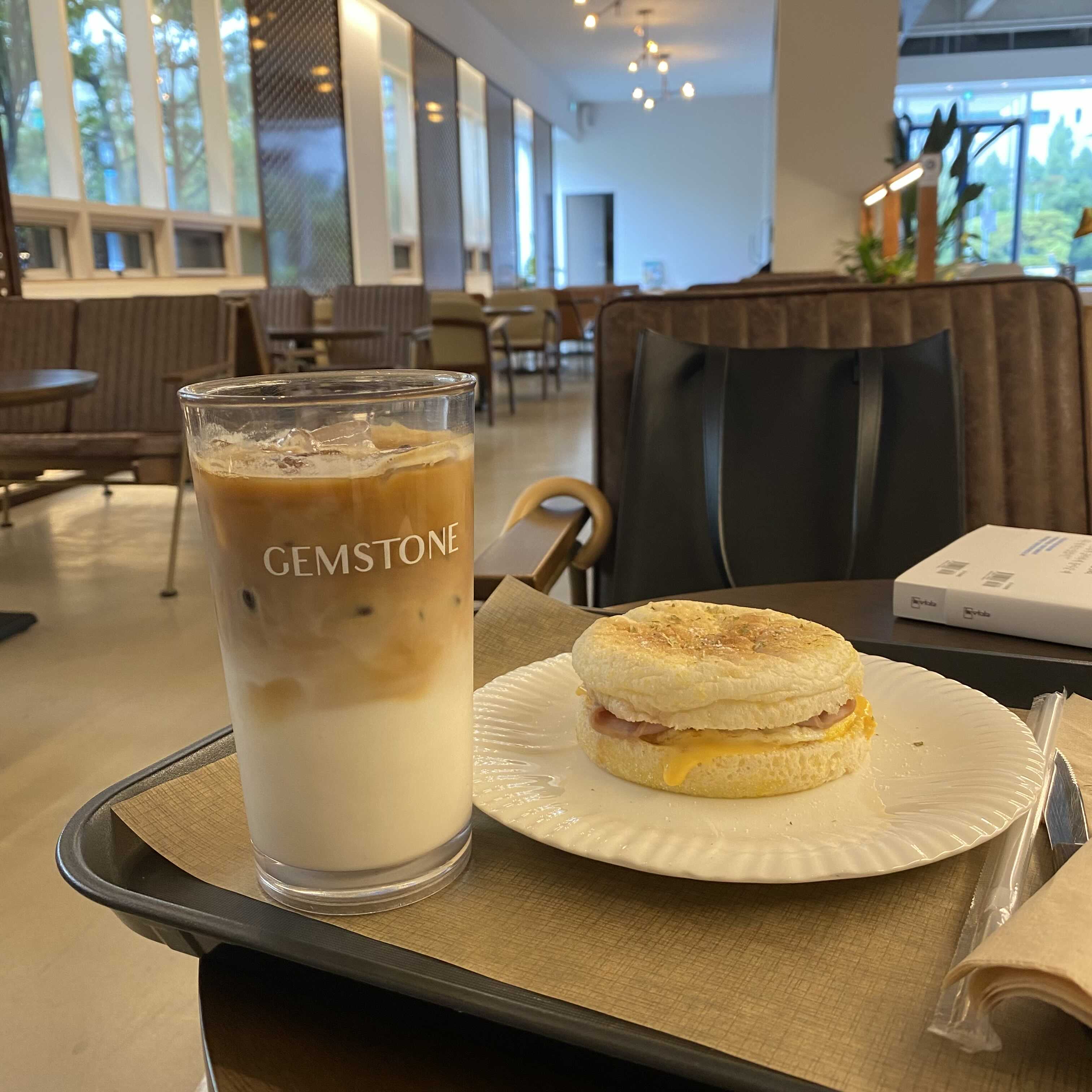 아이스 라떼랑 잉클리시머핀 시켜서 점심대신하기!