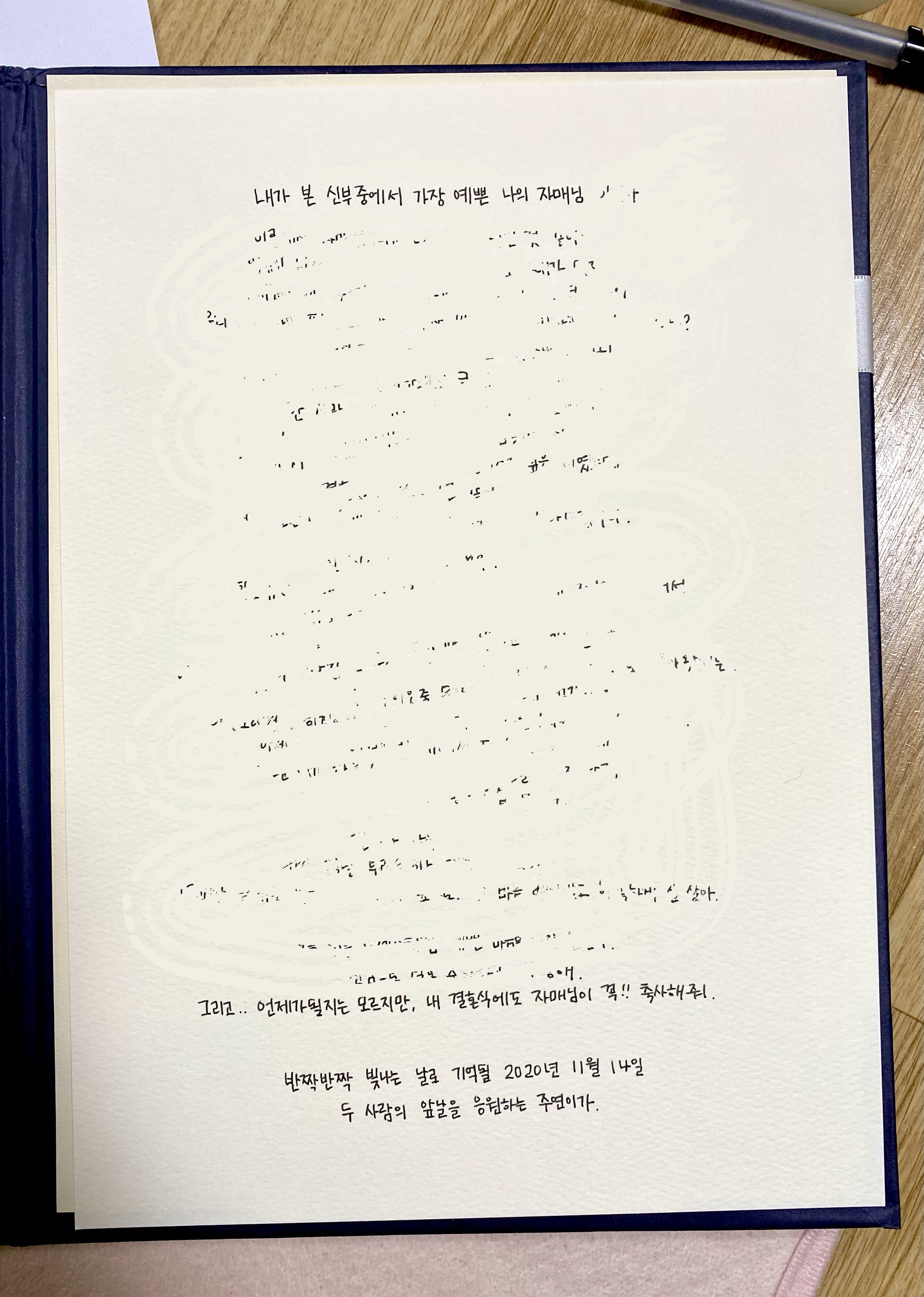 아마 신랑과도 안친하다면.. 신랑하게 당부하는 말, 부탁하는 말 등을 쓰면 좋을 것 같다 :)